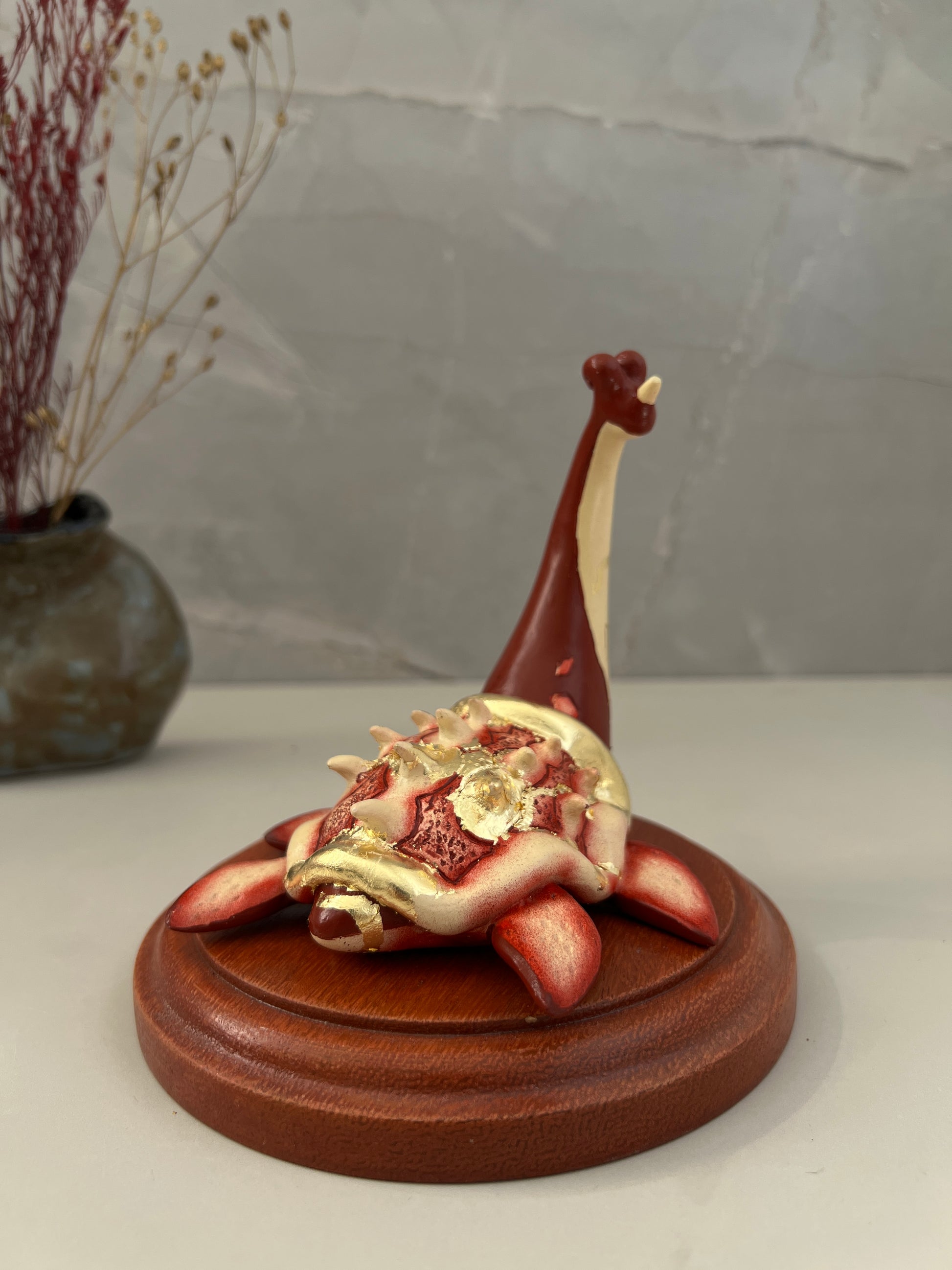 Material: Resina, pan de bronce y Madera